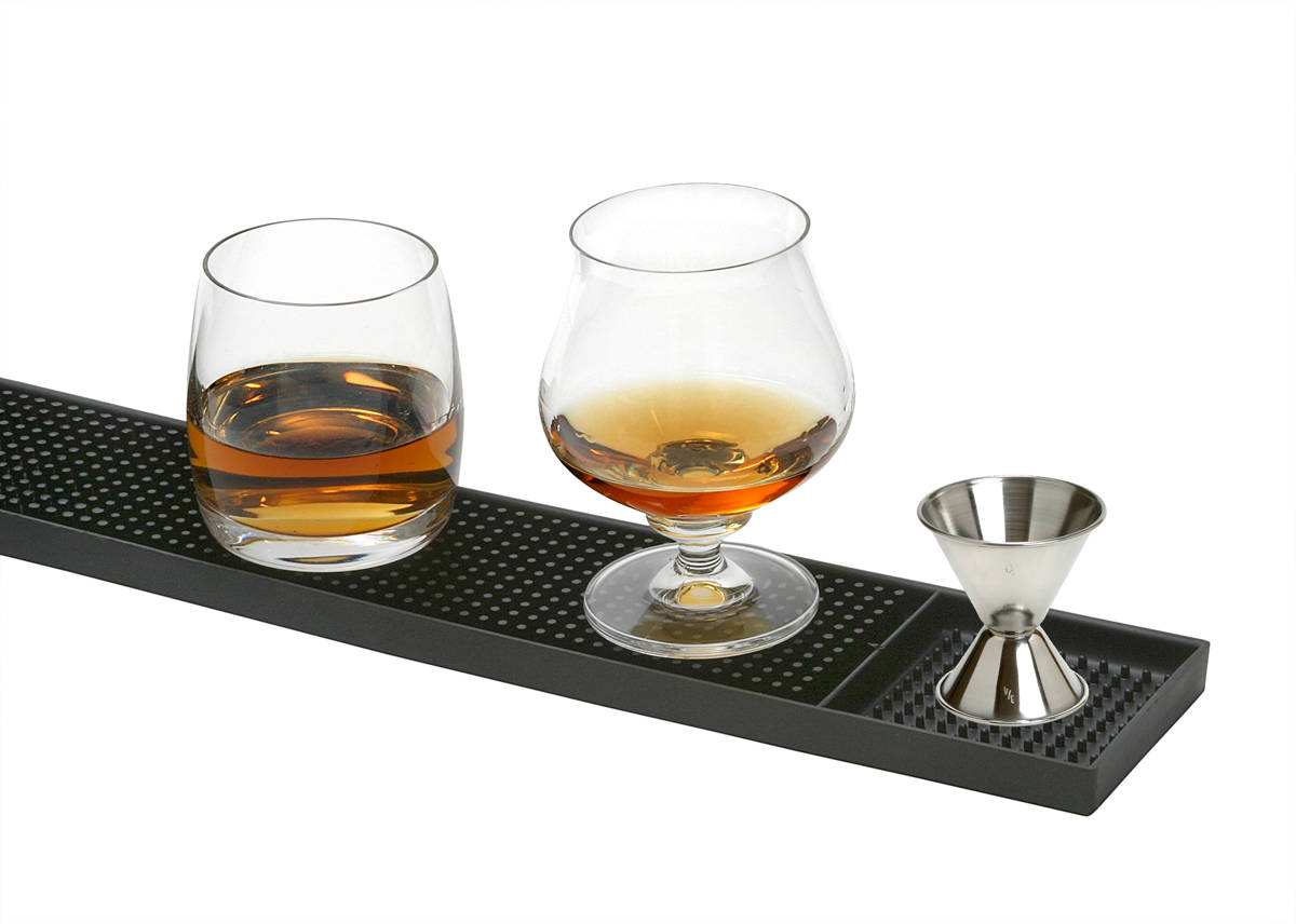 Mit abgetrenntem Feld mit niedrigen Noppen für Jigger und Shotgläser. Zum Reinigen einfach in warme Seifenlauge einlegen und anschließend mit Wasser abduschen.