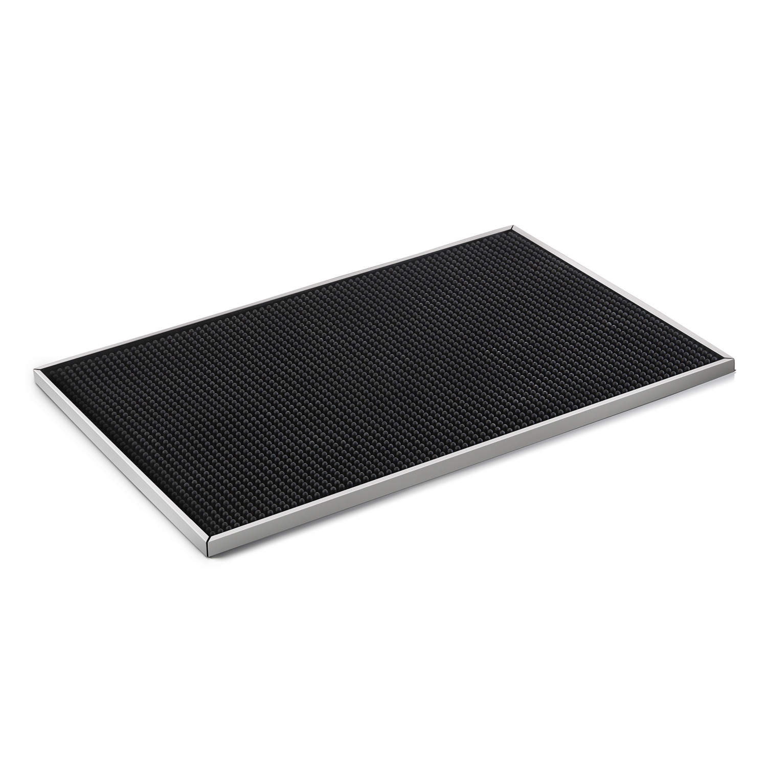 Diese großzügige Barmatte mit Edelstahlrahmen bietet viel Platz für Gläser, Shaker und weiteres Barzubehör. Sie ist perfekt für stark frequentierte Arbeitsbereiche geeignet. Sie schafft eine saubere, strukturierte Arbeitsfläche und hilft dabei, den Tresen vor Feuchtigkeit, Kratzern und Verschmutzungen zu schützen.