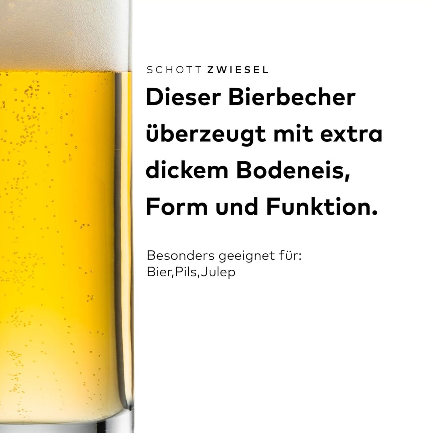 Der Bierbecher ist aus dem patentierten Tritan Kristallglas von Schott Zwiesel gefertigt. Dieses überzeugt durch sehr hohe Brillanz, Kratzfestigkeit und ist spülmaschinenfest. Hierdurch sind die Gläser langlebig und eignen sich für Gastronomie und Privathaushalte.