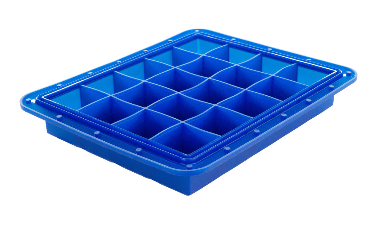 Große Eiswürfelform Arctic mit verschließbarem Deckel. Eiswürfelform aus Premium-Platin-Silikon für 20 x 4 cm Eiswürfel.