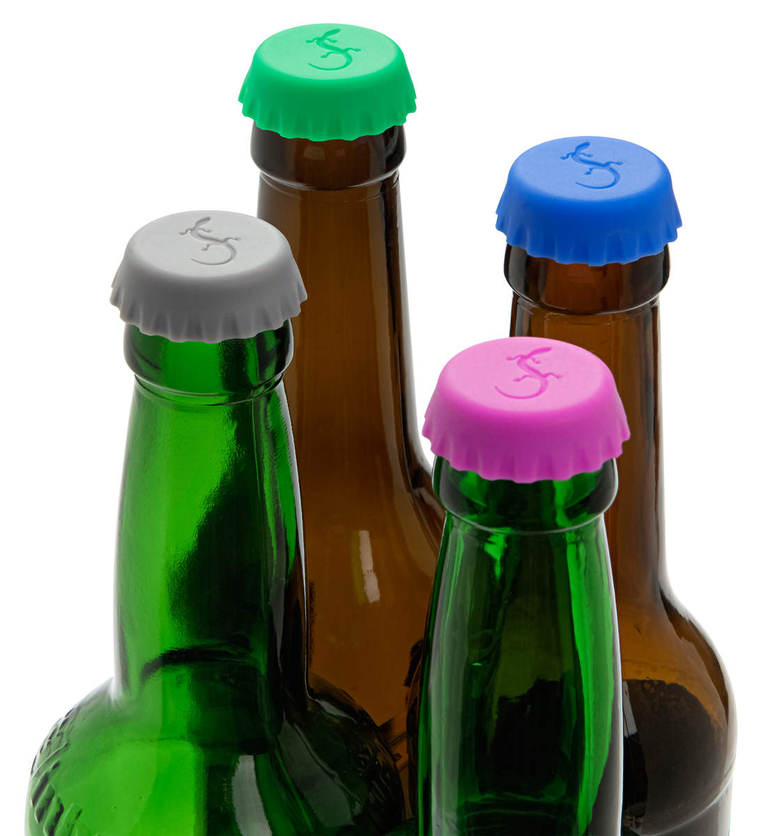 Kronkorken aus Silikon zum Wiederverschließen von Flaschen in 12 unterschiedlichen Farben.