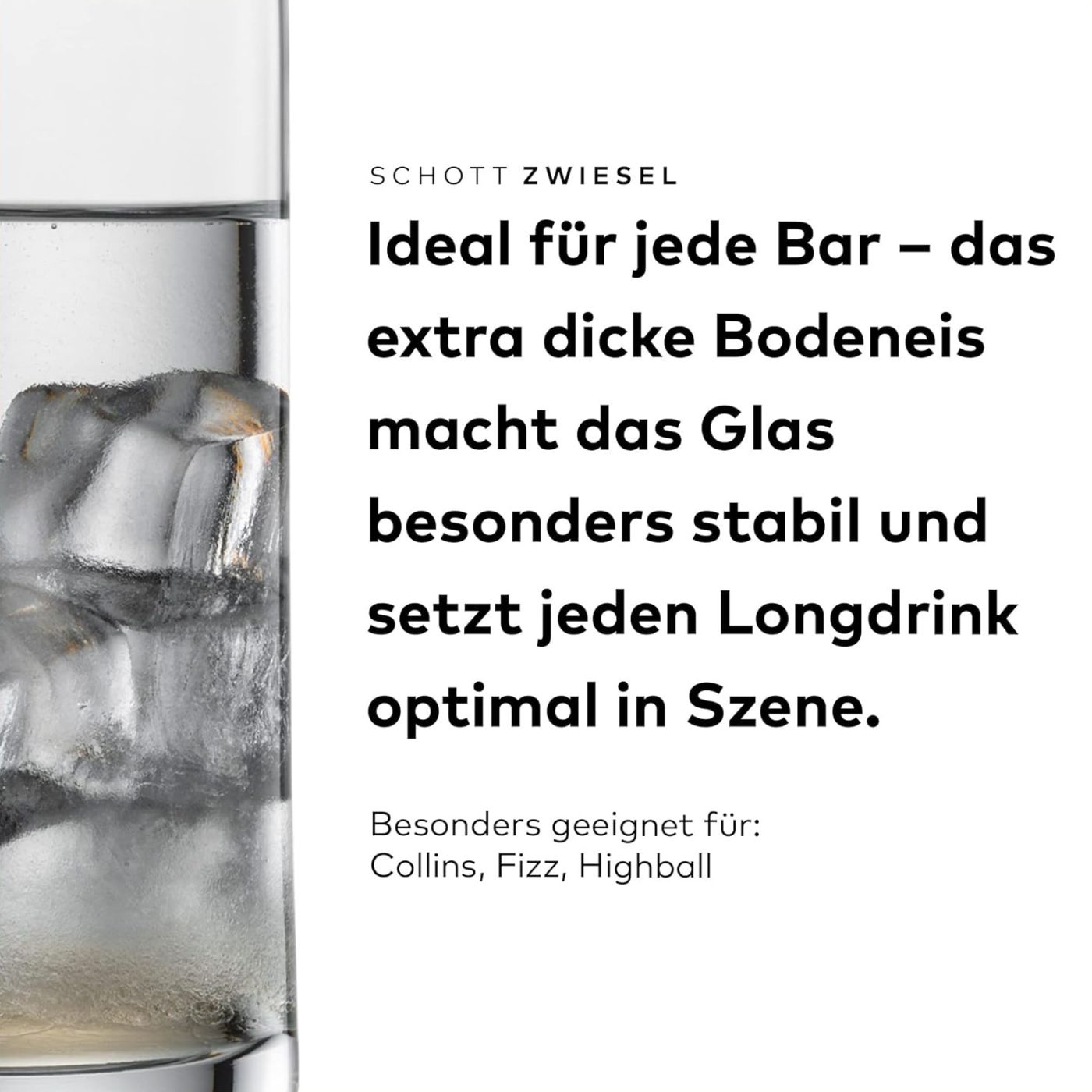 Das Longdrink Glas ist aus dem patentierten Tritan Kristallglas von Schott Zwiesel gefertigt. Dieses überzeugt durch sehr hohe Brillanz, Kratzfestigkeit und ist spülmaschinenfest. Hierdurch sind die Gläser langlebig und eignen sich für Gastronomie und Privathaushalte.