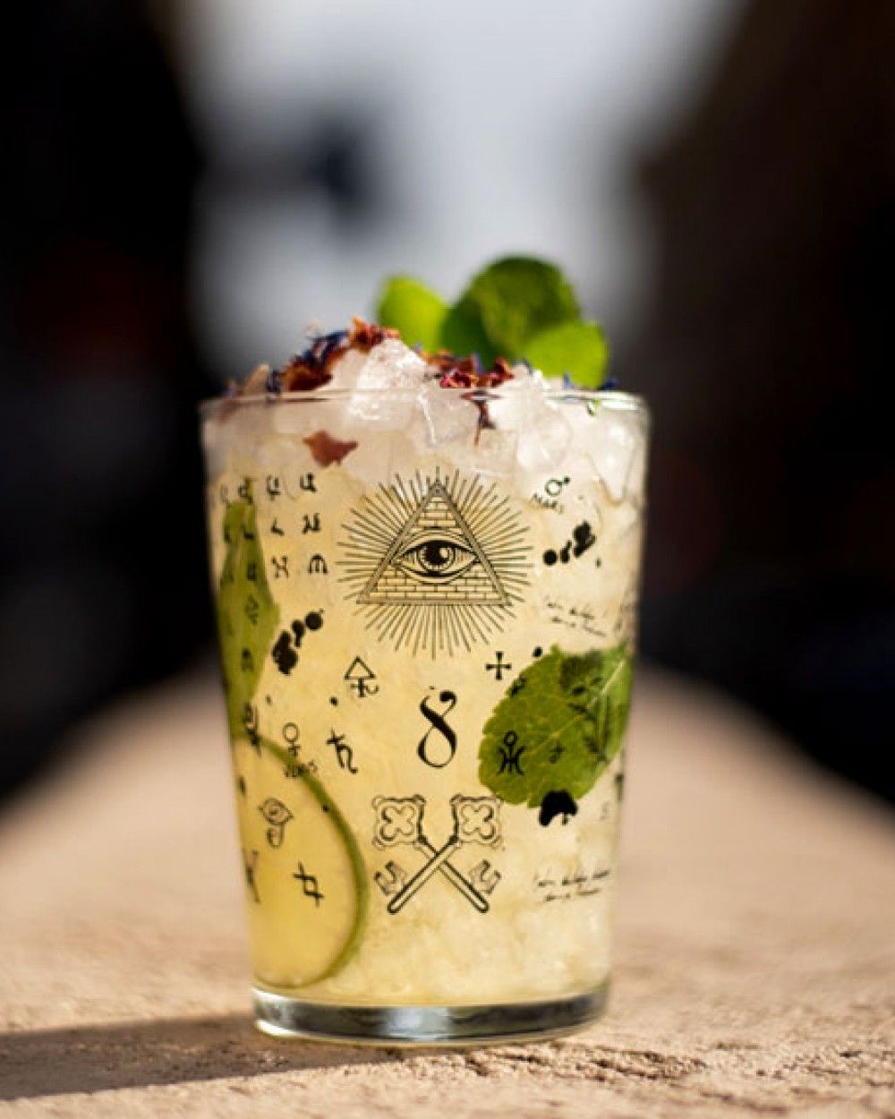 Passend zum Longdrinkglas mit Alchemy Verzierung ist ein Tumbler, ein Weinglas und ein Ballonglas erhältlich. Außerdem sind Cocktailshaker und Jigger mit Alchemy Verzierung erhältlich.