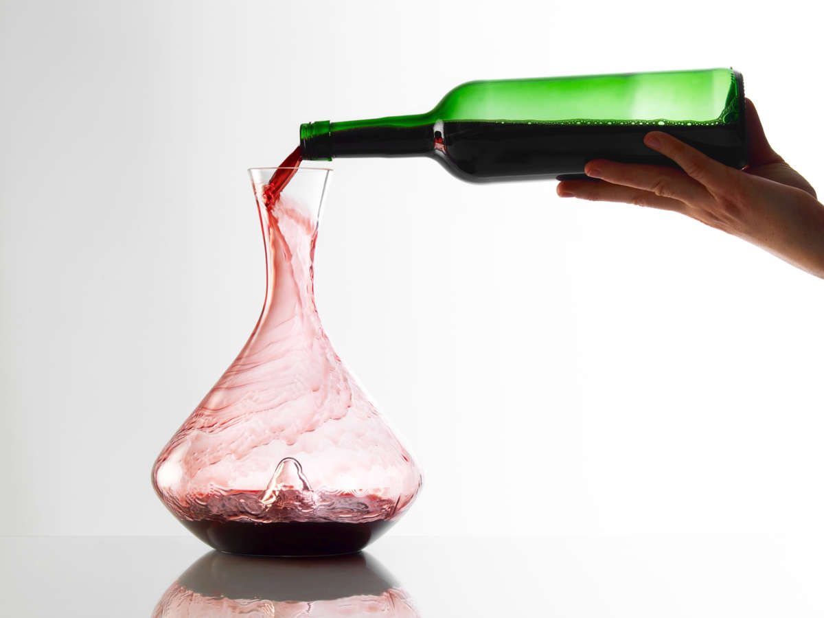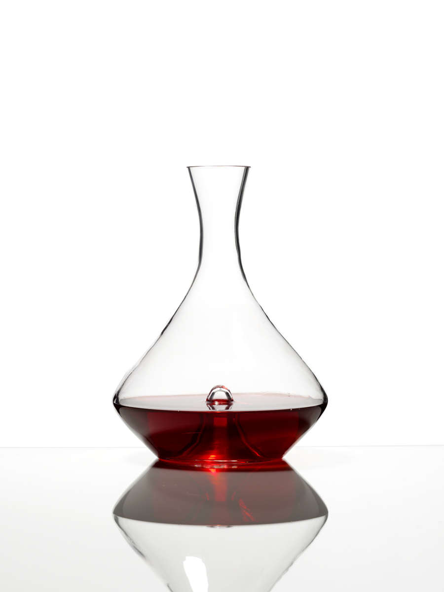 Der mundgeblasene Dekanter Fire besitzt eine elegante Form mit schmalem Hals und einer prominenten Griffmulde im Boden. Diese Griffmulde ist sowohl praktisch für einen sicheren Griff als auch ein hervorstehendes Designelement um dem Rotwein Dekanter optisch weiter hervorzuheben.