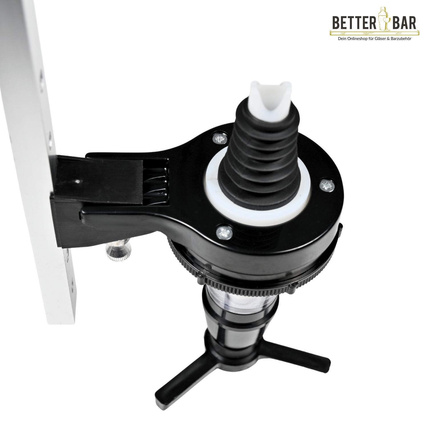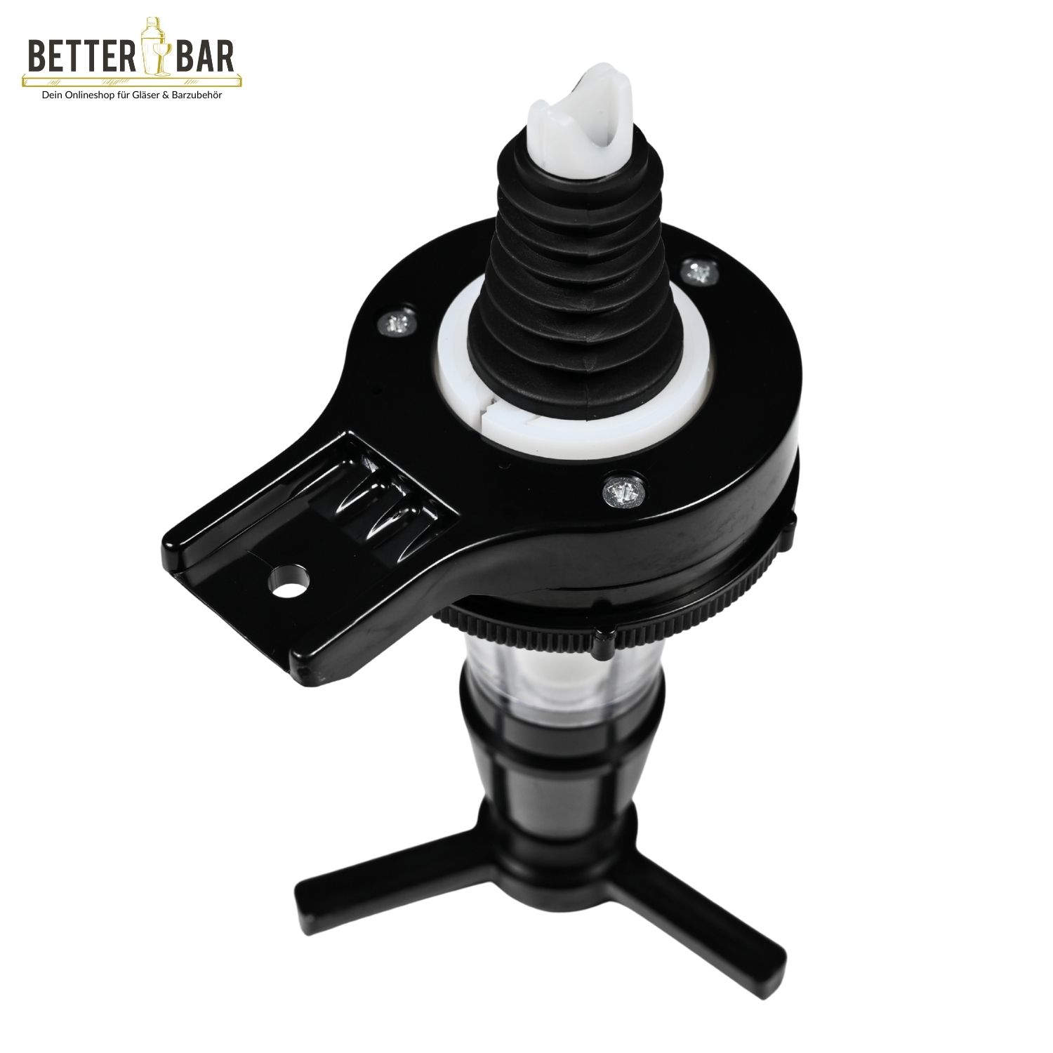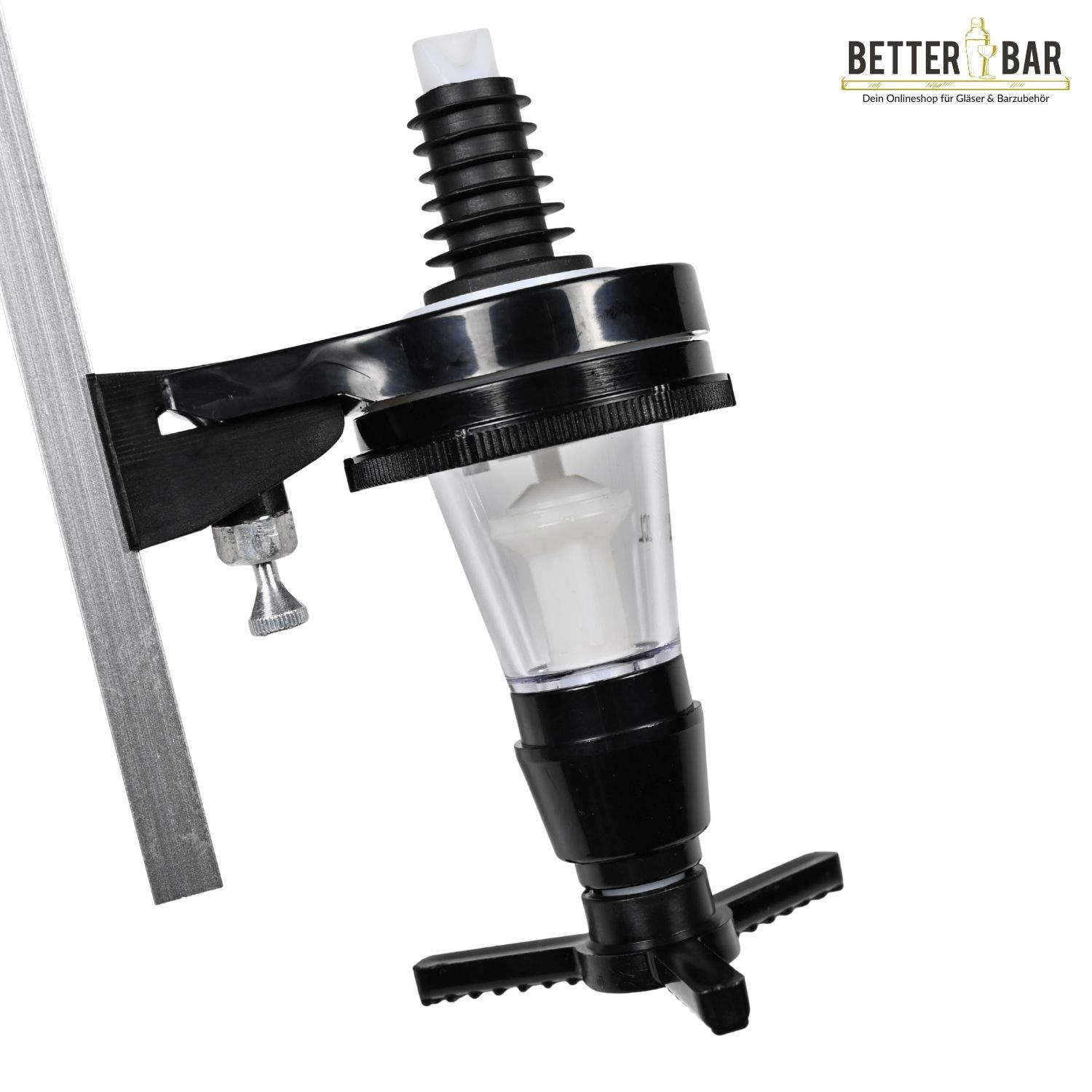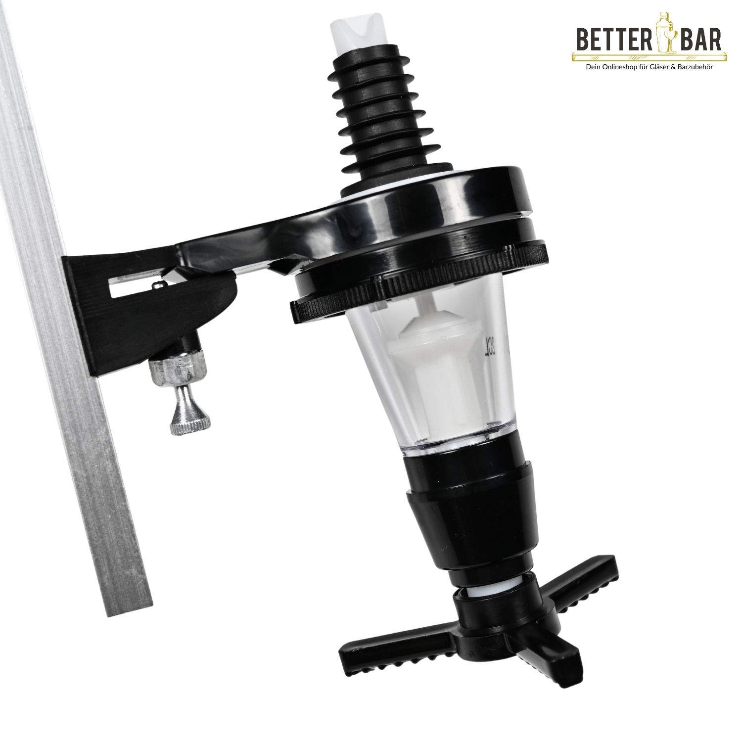 Der Dosierer wird zusammen mit Flaschenhaltern genutzt, in denen die Flasche mit der Öffnung nach unten hängt. Zur Entnahmen drückt man ein Glas von unten gegen die Arme und erhält die Spirituose. Im Anschluss füllt sich der Dosierer automatisch wieder auf. Der Dosierer ist mit einem Dichtungssystem versehen, um einen tropffreien Ausschank sicher zu stellen.