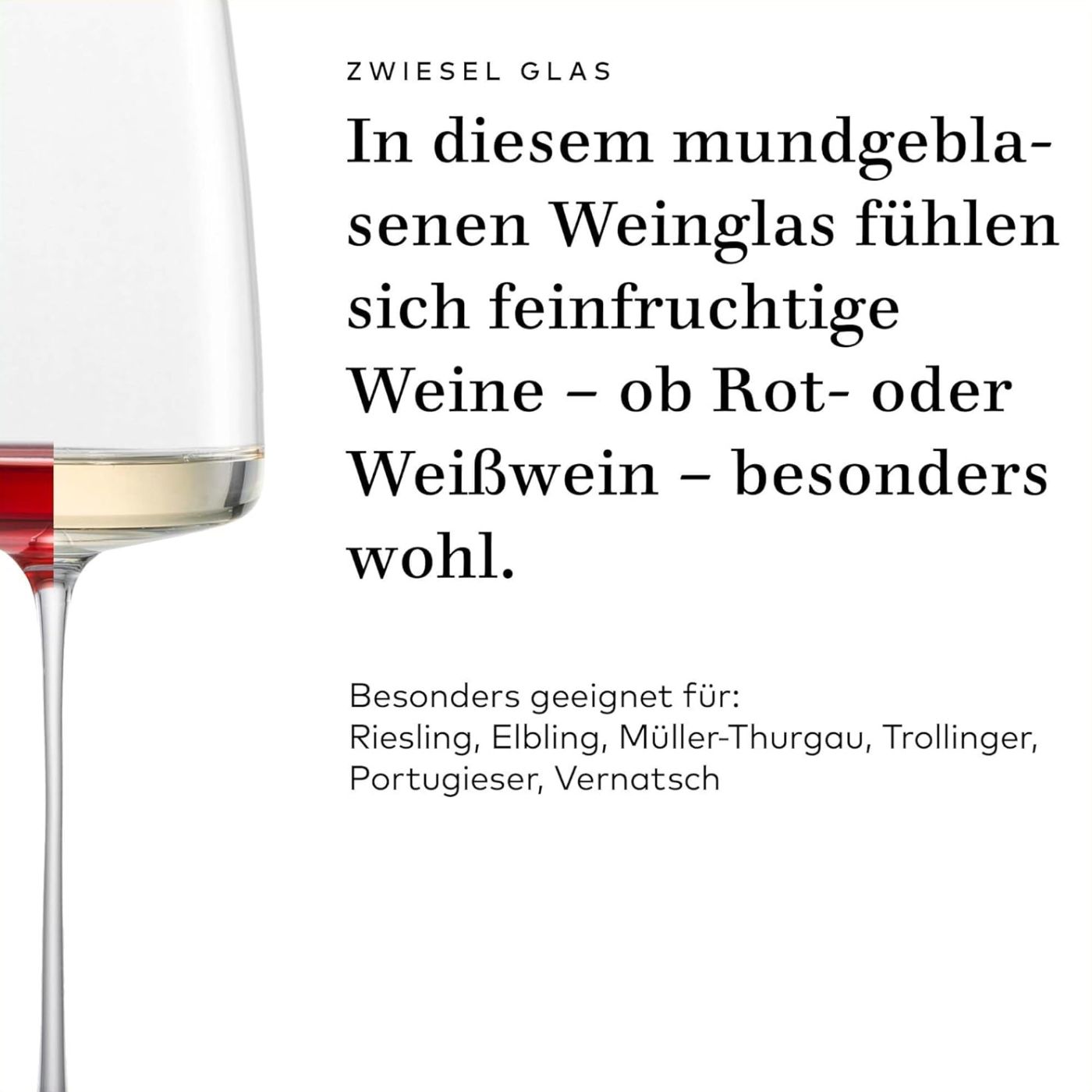 Das Weinglas Leicht & Frisch wurde für leichte und frische Weinsorten wie Riesling, Elbling, Trollinger und Müller-Thurgau entworfen.