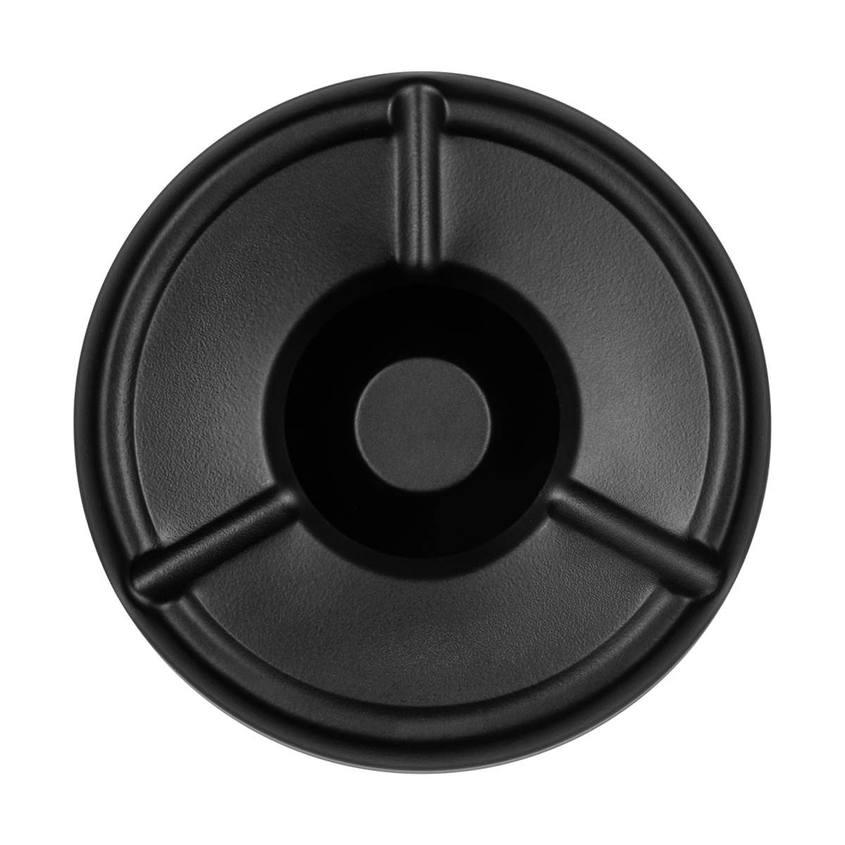 Der Aschenbecher ist schwarz pulverbeschichtet. Er hat einen Durchmesser von 12 cm und eine Höhe von 3,5 cm.