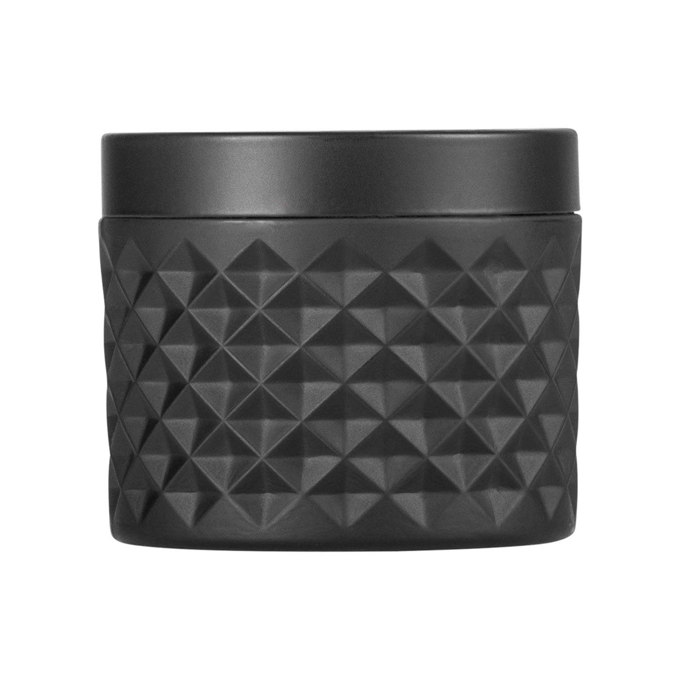 Schwarzer Windaschenbecher aus Glas mit schwarzem Metalldeckel. Der Aschenbecher hat einen Durchmesser von 9,5 cm und eine Höhe von 8 cm.