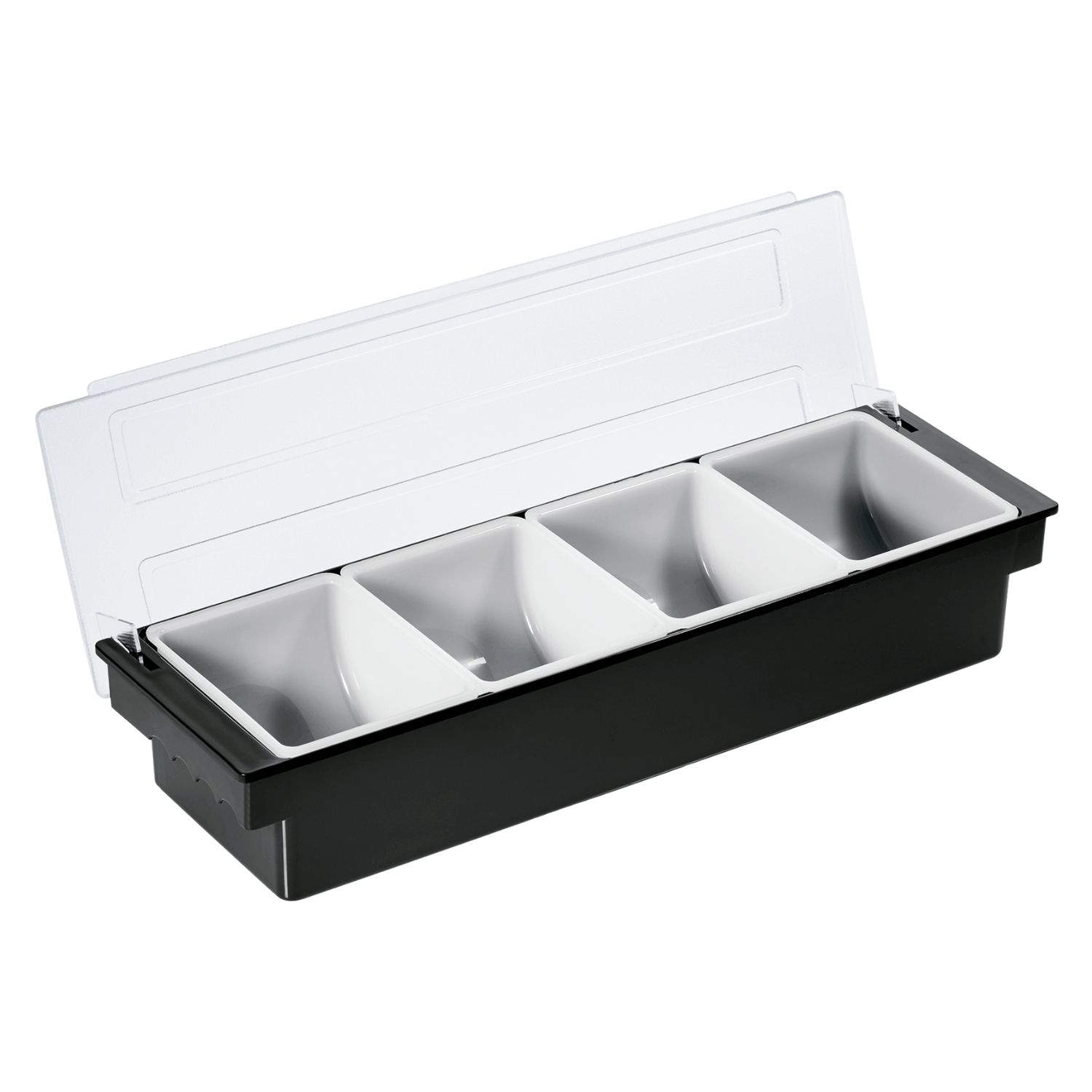 Dieser Zutatenbehälter mit vier großzügigen Fächern ist ideal, um schnell auf frische Bar-Zutaten wie Garnituren, Früchte oder Toppings zuzugreifen. Jedes Fach fasst 0,75 Liter und bietet damit ausreichend Platz für den professionellen Einsatz an der Bar oder im Service.